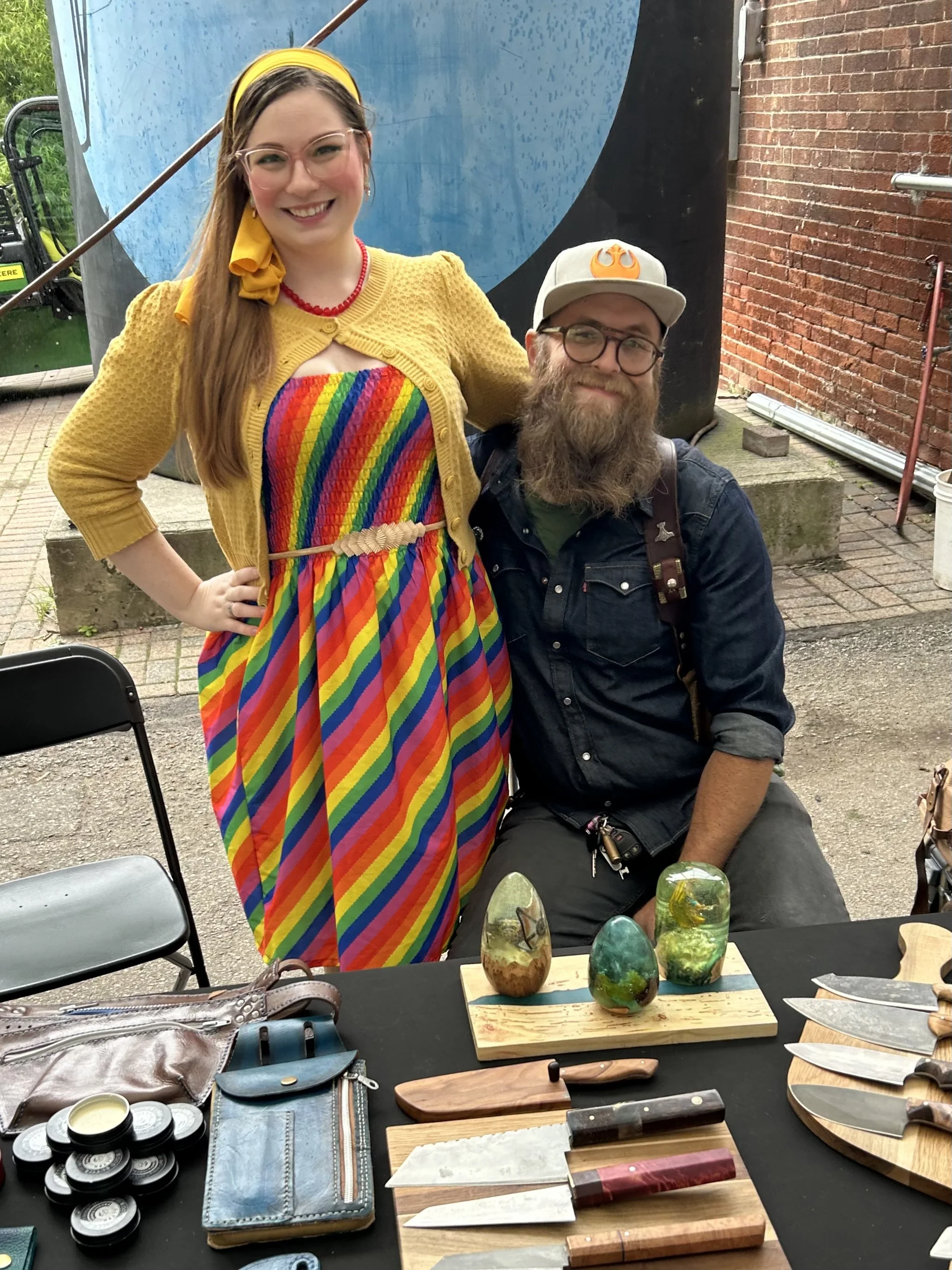 What started with knives soon grew into a full line of heirloom-quality kitchen and home goods. David focuses on the making — crafting each unique blade from carbon steel and shaping cutting boards from salvaged Canadian lumber, both often accented with epoxy. Laura brought her own creativity into the fold, designing and crocheting handmade kitchen towels from recycled materials. Along with making, she took the reins on marketing, storytelling, and building the brand. As demand grew, Sue Tilley (David’s mother) joined the team, managing online sales and booking venues and markets — turning Glyph Prod. into a true family operation.
